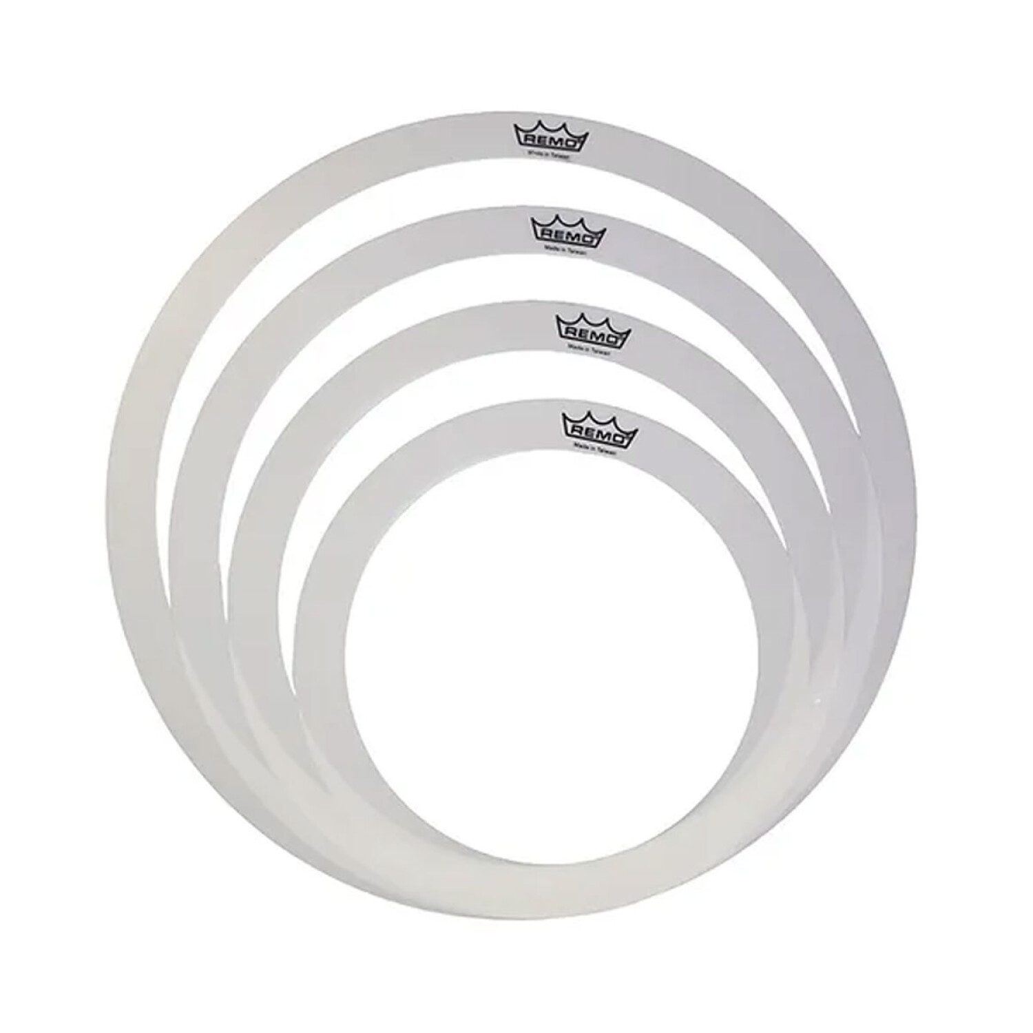 Anillos controladores de sonido Remo. Permiten controlar los ruidos molestos del sonido agudo de los toms y caja, otorgando un sonido más limpio y agradable al minuto de practicar batería.