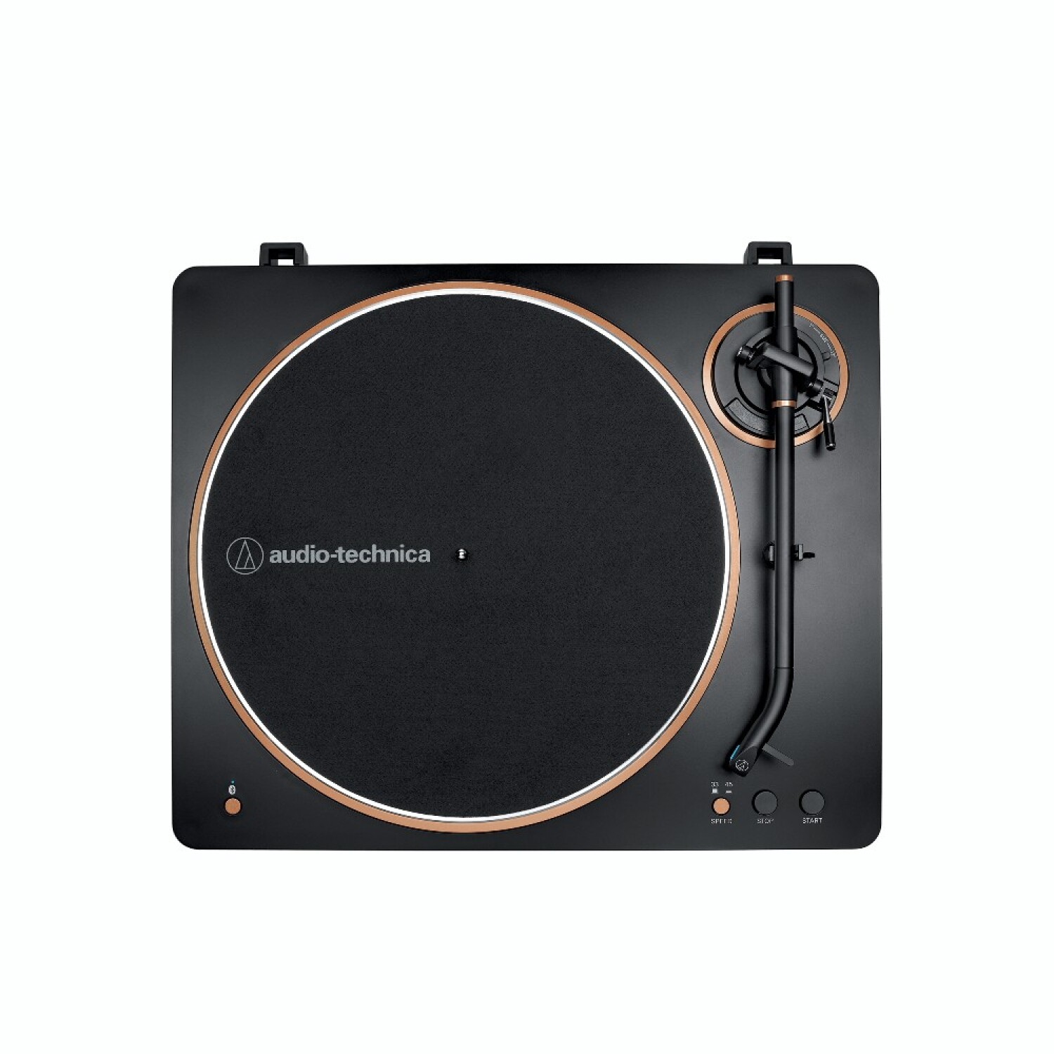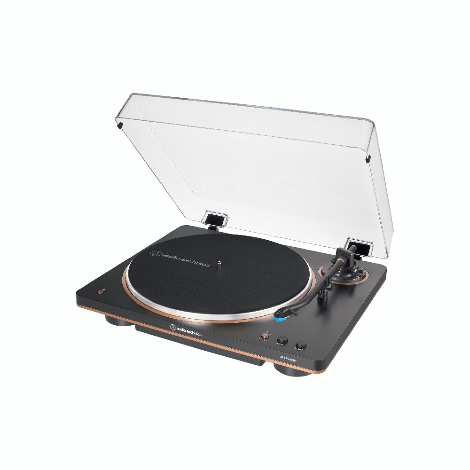Diseñada para combinar la calidez del vinilo con la comodidad de la tecnología moderna, esta bandeja ofrece reproducción de alta fidelidad y conectividad inalámbrica. Su diseño elegante en negro y bronce destaca tanto en estética como en prestaciones, ideal para amantes del sonido analógico que buscan versatilidad.