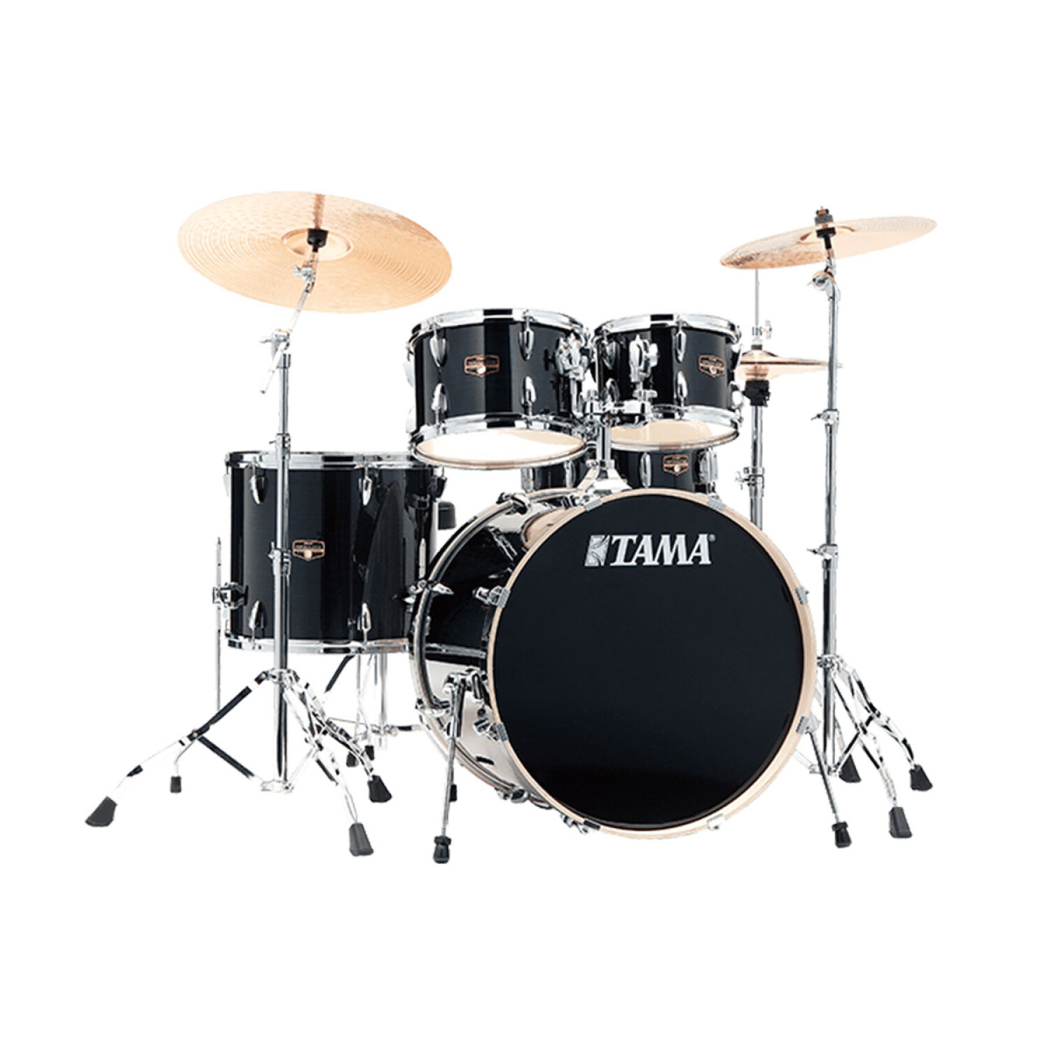 Batería set de 5 piezas Tama Imperialstar Hairline Black Medidas: Bombo 22" Tom 10" Tom 12" FloorTom 16" Caja 14"x5'5. Incluye soporte para toms, de Hi-Hat, pedal de Bombo Soporte de caja Soporte recto para plato Soporte de jirafa para plato.