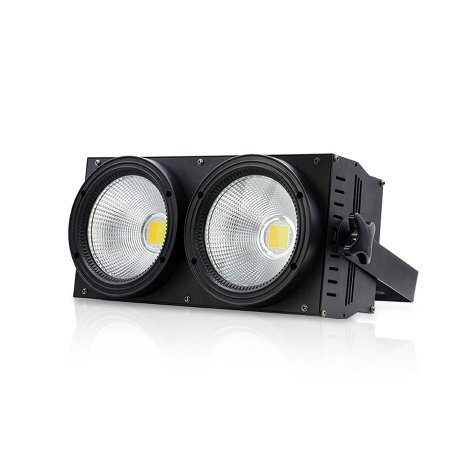 Potente blinder con LEDs duales para efectos cálidos y fríos, complementado con LEDs RGB para mayor versatilidad en iluminación de escenarios y espectáculos.