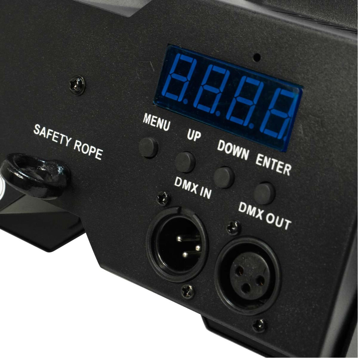 Conectividad: Entradas y salidas DMX, display con botones de navegación