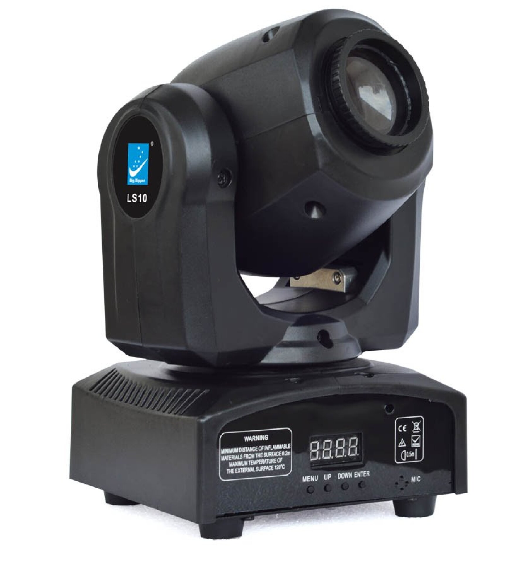 CABEZA MOVIL 10W 7 COLORES + BLANCO / 7 GOBOS FIJOS + GOBO BLANCO / MODO DMX , AUTOMATICO , AUDIO RITMICO