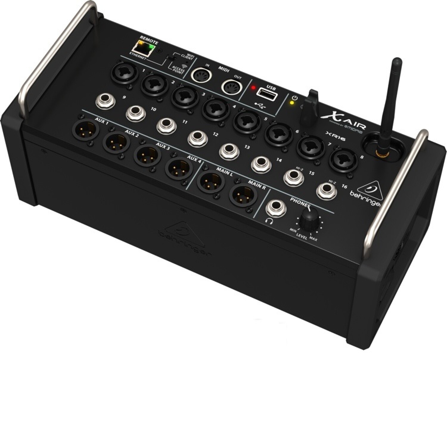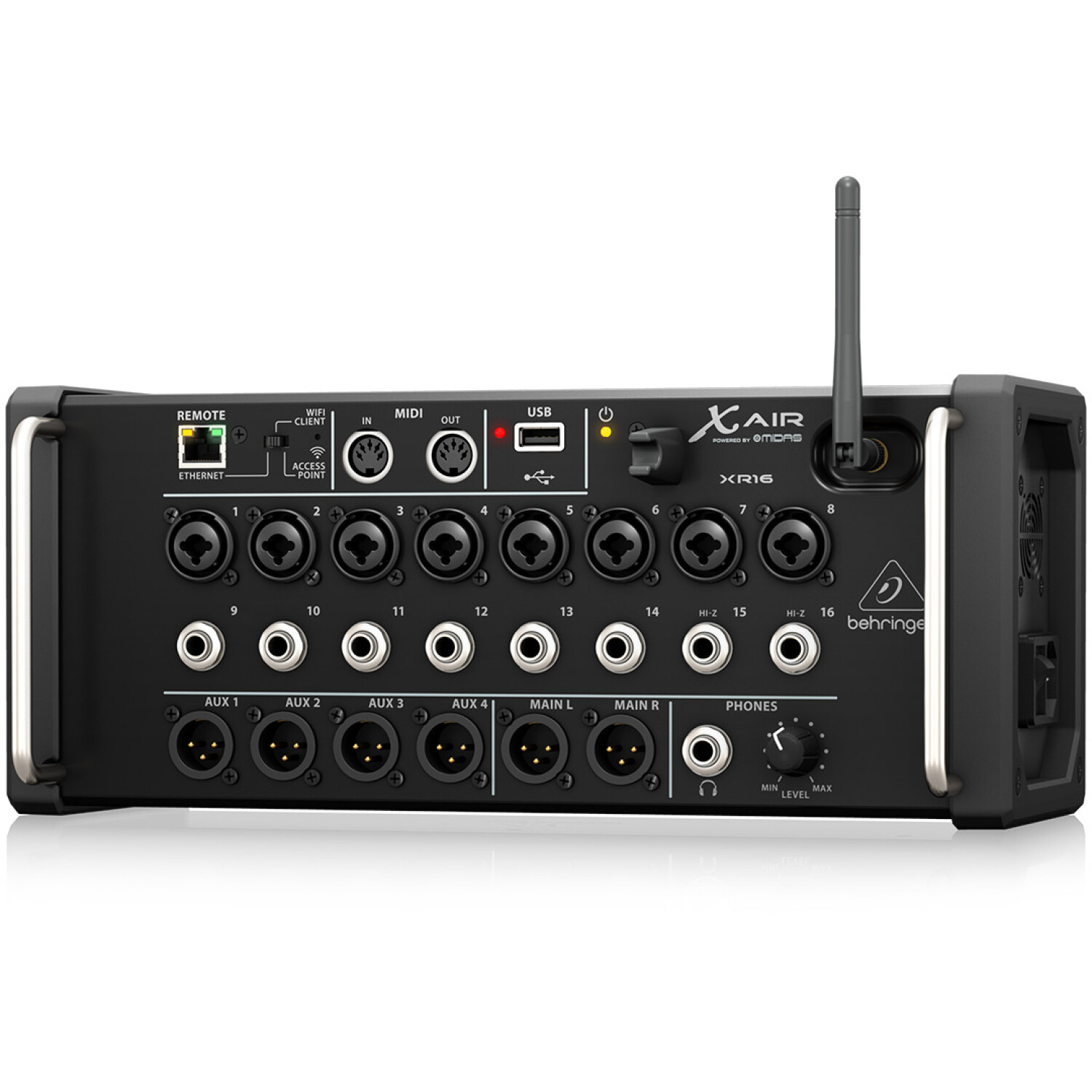 La Behringer XR16 es una consola digital de 16 canales con conectividad Wi-Fi integrada, ideal para estudios y presentaciones en vivo. Ofrece control remoto desde múltiples dispositivos y cuenta con efectos de alta calidad, analizadores de banda y opciones de grabación en WAV estéreo. Su diseño compacto y kit de montaje en rack la hacen versátil y fácil de integrar en cualquier configuración.