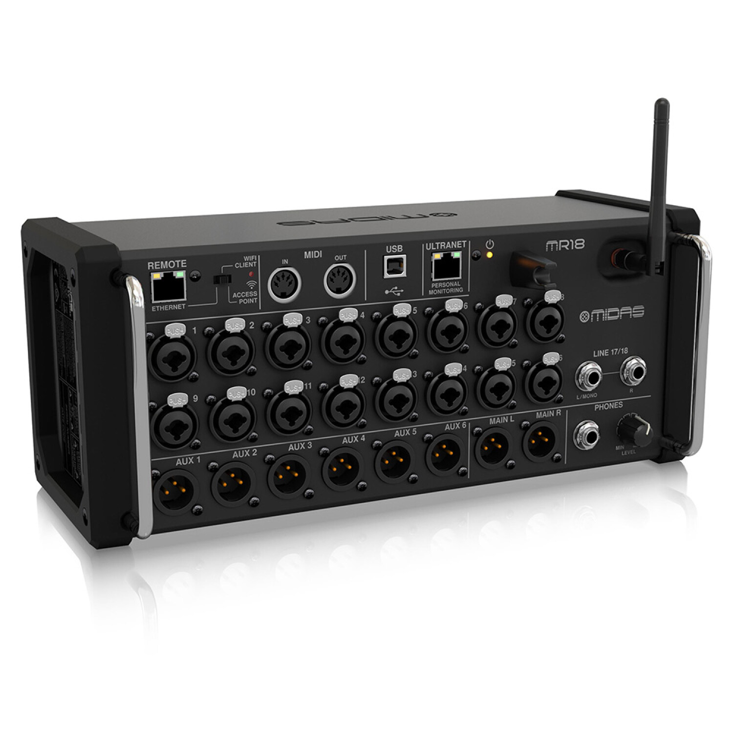 El MIDAS M32 redefinió completamente lo que es posible desde un mezclador digital, y miles de usuarios están disfrutando de los resultados. Ahora que la tecnología se ha incorporado en el pequeño pero potente mezclador MR18 para montaje en bastidor, que cambiará para siempre la forma en que graba y la forma en que reproduce música en vivo.