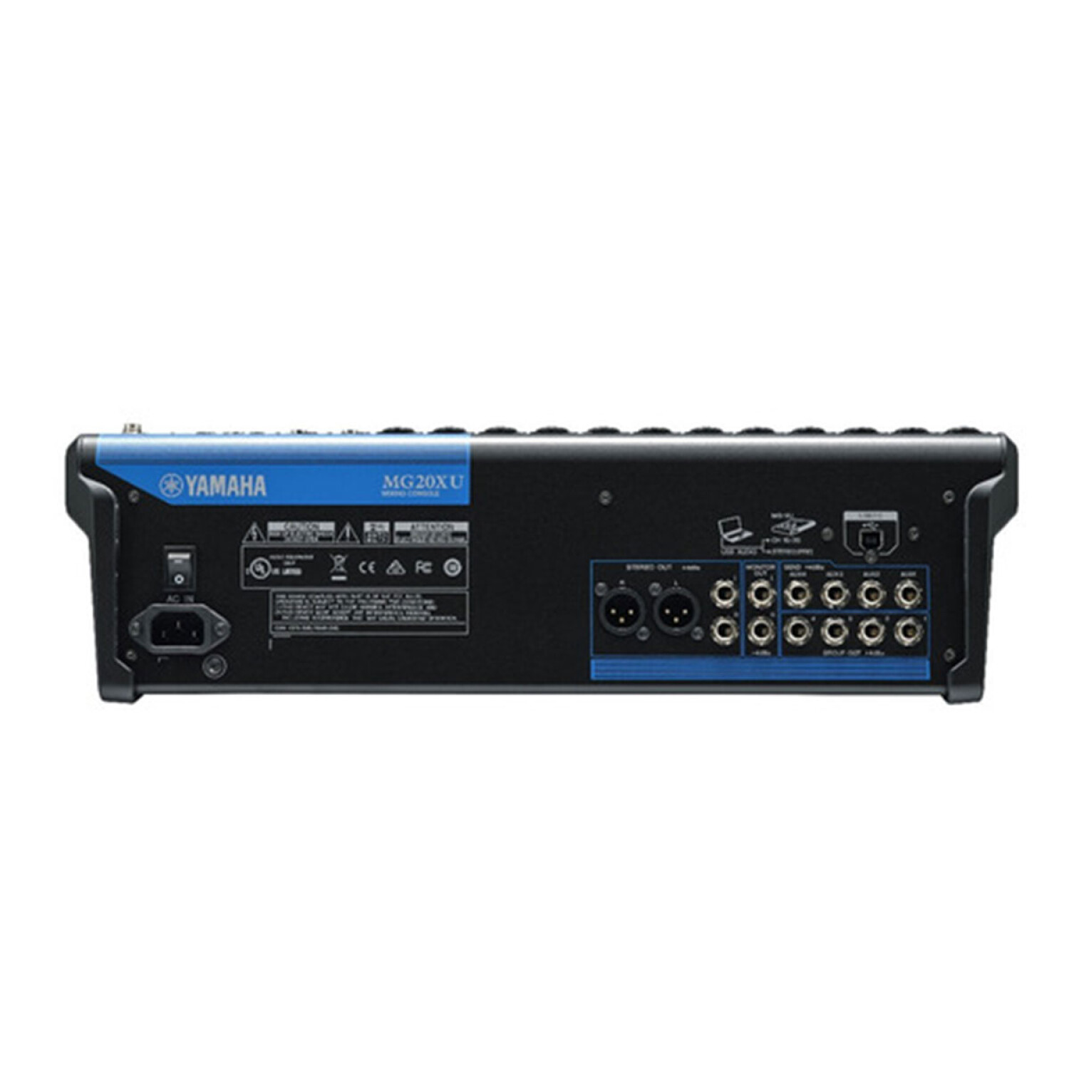 Mesa de mezclas de 20 canales: máximo 16 entradas de micro/20 de línea (12 mono + 4 estéreo); 4 buses de grupo + 1 bus estéreo; 4 envíos AUX (incluyendo envío para efectos).