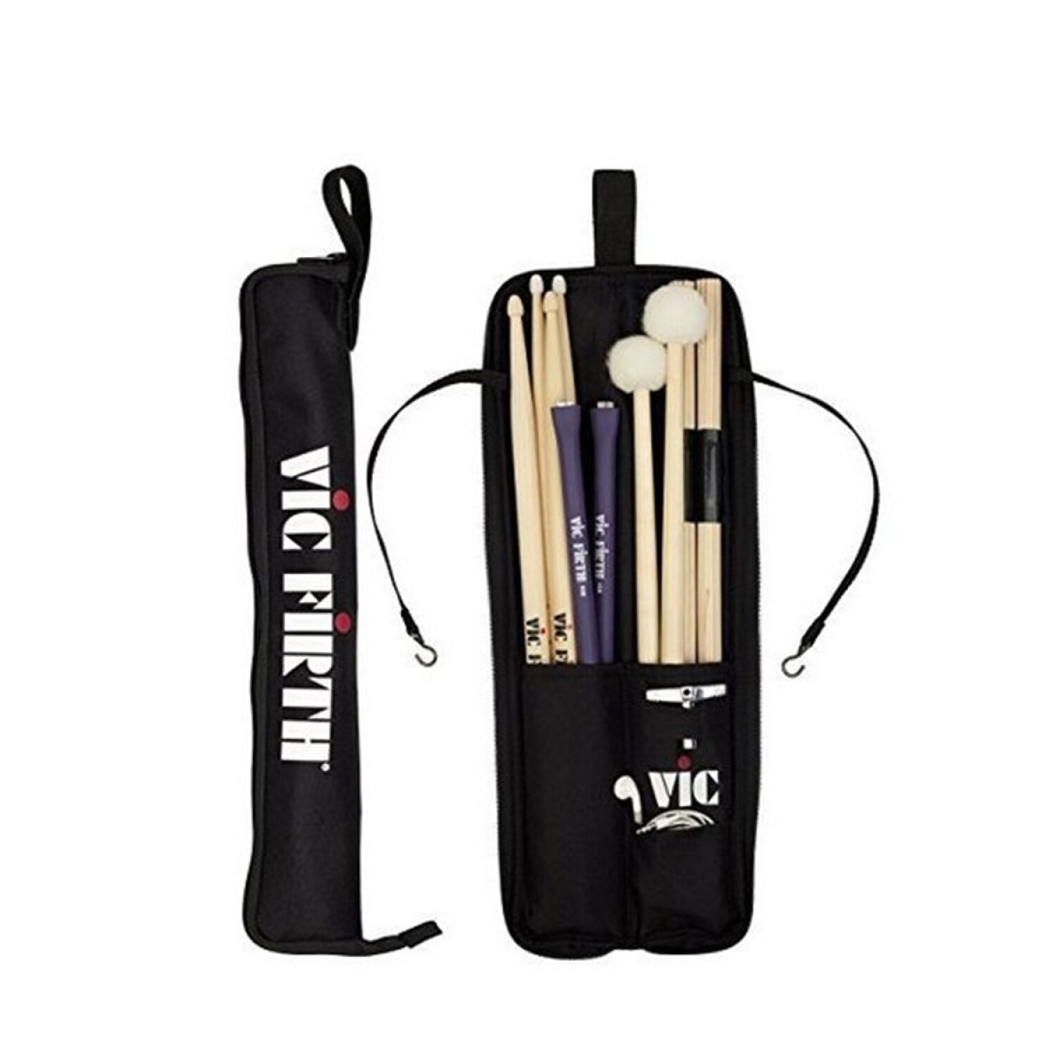 Cuenta con un sistema de gancho y correa para una suspensión segura del tom de piso o caja Dimensiones: 19 "de alto, 8,25" de ancho (cuando está abierto) Nailon resistente al agua Sostiene 4-5 implementos