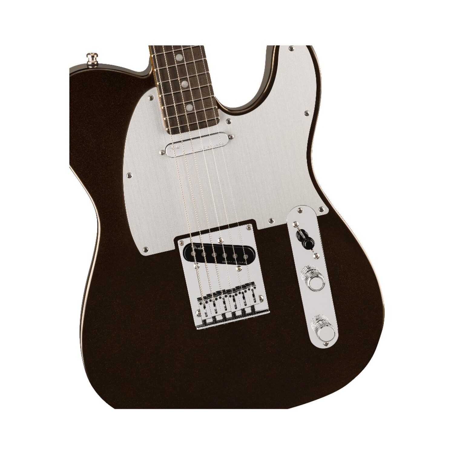 El puente híbrido top-load / string-through con selletas compensadas de bronce tipo “bullet” permite ajustar tensión y carácter de cada cuerda, logrando mayor precisión y comodidad.