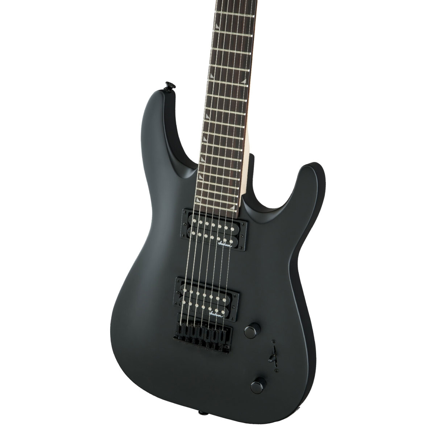 Alimentado por dos pastillas humbucking de alto rendimiento Jackson de montaje directo, el JS22-7 DKA HT también está equipado con un interruptor de hoja de tres vías, controles de tono y volumen únicos, puente Jackson HT7 fijo de cuerda a través del cuerpo compensado, fundido a presión sellado sintonizadores y nuestro clavijero AT-1 3x4 (3 arriba, 4 abajo).