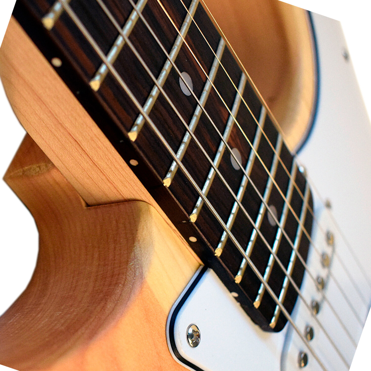Su cuerpo totalmente construido de madera solida de la Patagonia, le proporciona una sonoridad muy rica en armónicos y sustain.