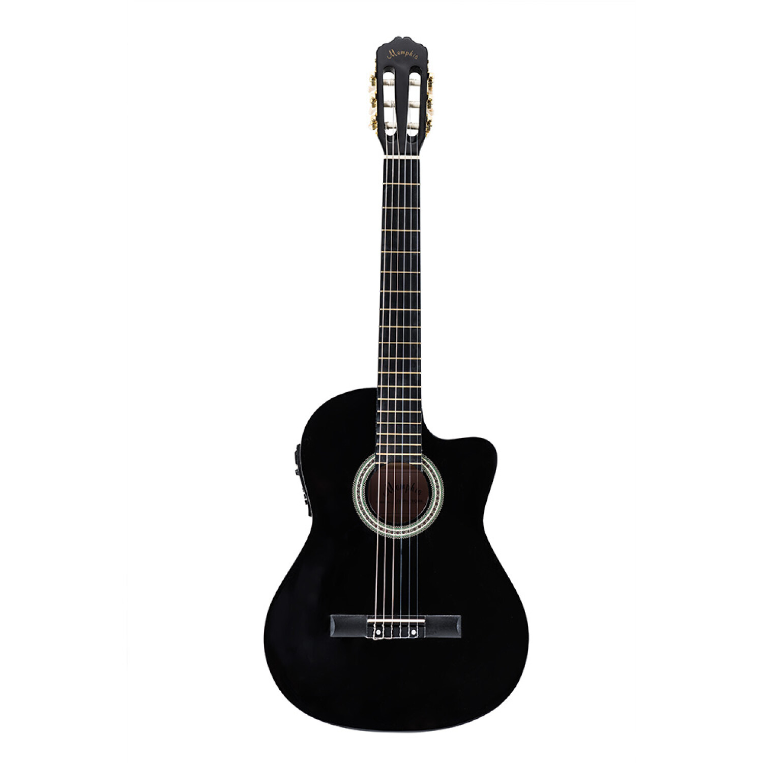 MemphisGuitarra Electro Acústica Memphis 951 Nylon BlackEscala normal cuerdas de nylon Tapa, aro y fondo enchapados Trastes de bronce Electronica activa con ecualizadore de 4 bandas e indicador del estado de la bateria Color: Negro951BLK951BLKhttps://www.palaciodelamusica.com.uy/catalogo/guitarra-electro-acustica-memphis-951-nylon-black_951BLK_951BLK