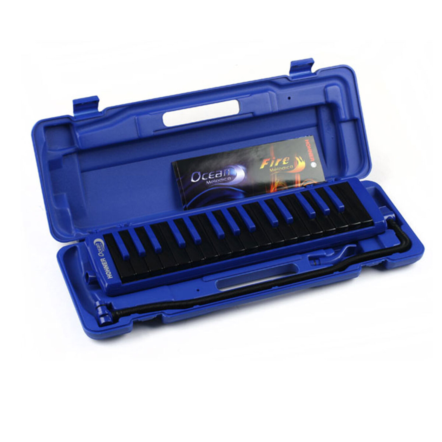 Hohner Ocean 32 Melodica es un nuevo diseño con teclas negras y cuerpo azul, sonido y la respuesta excelente como el modelo student 32, f-c range incluye boquilla y estuche.