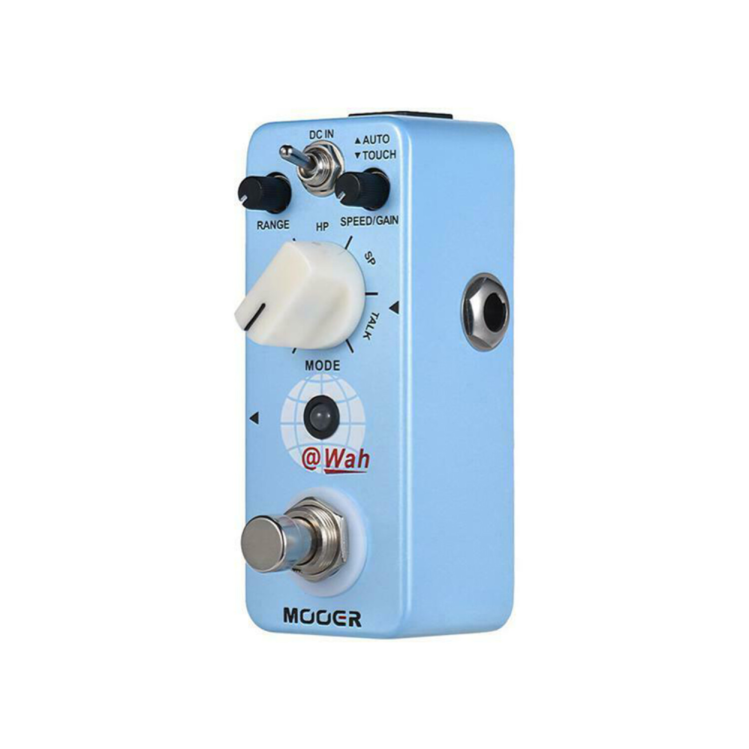 Perilla de rango: ajusta la tonalidad del filtro; Velocidad/botón de ganancia: ajusta la velocidad del AUTO wah o la respuesta de entrada del toque wah.