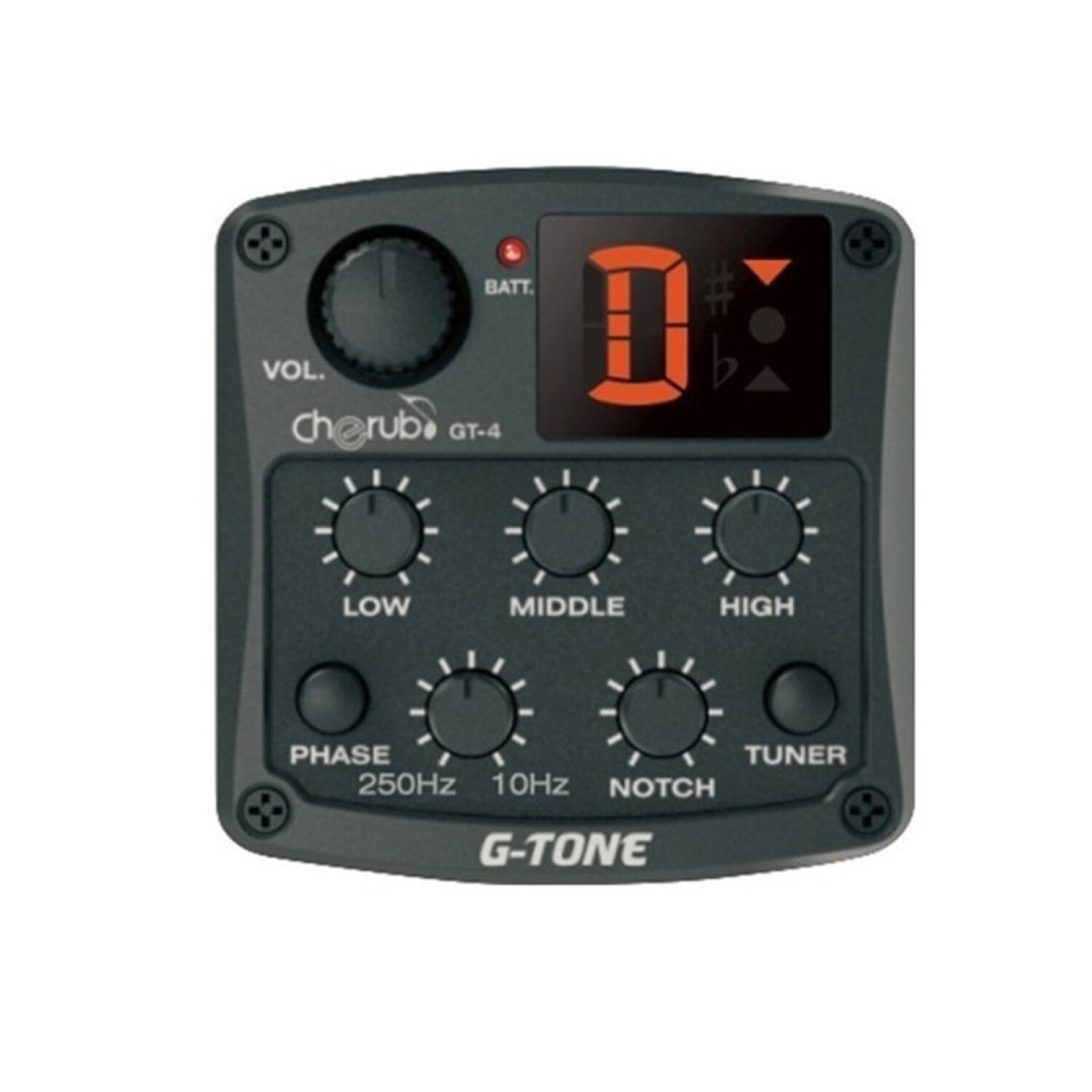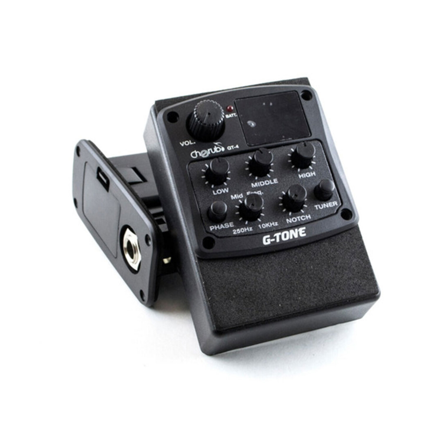 Microfono Cherub Gt-4 Activo para Guitarra/Bajo electro acústicos, con ecualizador de 3 bandas (Low, Middle, High) y afinador cromático digital integrado. Equipa ademas controles notch y frecuencias medias con lo que puedes obtener un sonido profesional modelado a tu gusto, ademas control Phase para evitar molestos Feedbacks. Alta calidad y excelente sonido para tu instrumento musical