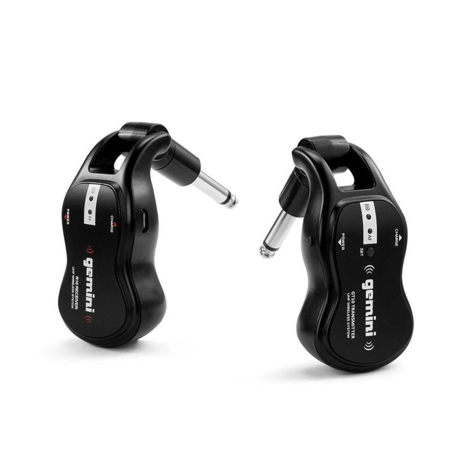 El Gemini GMUG100 es un sistema de guitarra inalámbrico UHF con un transmisor y receptor inalámbrico recargable de 1/4". Este sistema Plug & Play expandible satisfará todas tus necesidades de guitarra inalámbrica con baterías recargables USB y conexión inalámbrica de larga distancia, solo conéctalo y enciéndelo y estarás listo para rockear. El GMUG100 está hecho para guitarras eléctricas y acústicas/eléctricas, pero funcionará con cualquier instrumento o dispositivo de audio con una salida de 1/4" que requiera movimiento en el escenario, como un Keytar o Violín eléctrico. El GMUG100 funcionará con guitarras/bajos con pastillas activas y pasivas.
