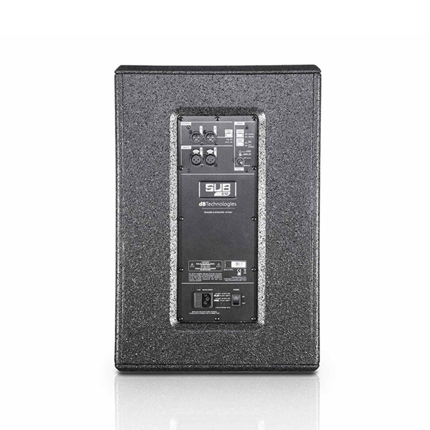Al igual que los modelos de 15” y 18” de esta familia, el SUB 612 bass-reflex incorpora un amplificador de 600W RMS Clase D con SMPS, ofrece un nivel de presión acústica extraordinario (hasta 129 dB) a pesar de su compacto alojamiento (solo 19,8 kg - 43,65 lbs) y proporciona una reproducción muy precisa.