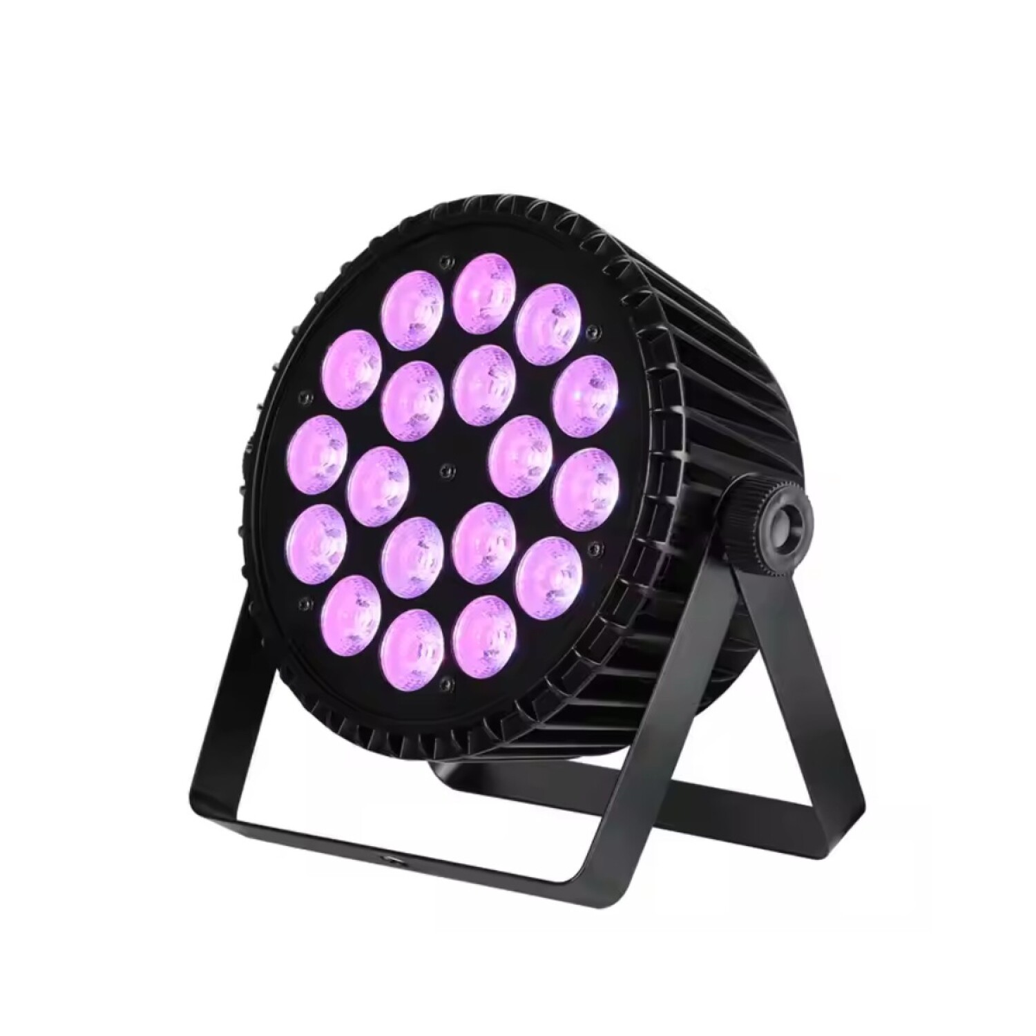 Par LED profesional con 18 potentes LEDs de 18W en configuración 6 en 1 (RGBA + Ámbar + UV), ideal para escenarios, fiestas, eventos y producciones. Ofrece una mezcla de colores precisa y efectos dinámicos controlables mediante DMX. Sistema de refrigeración eficiente y gran durabilidad.